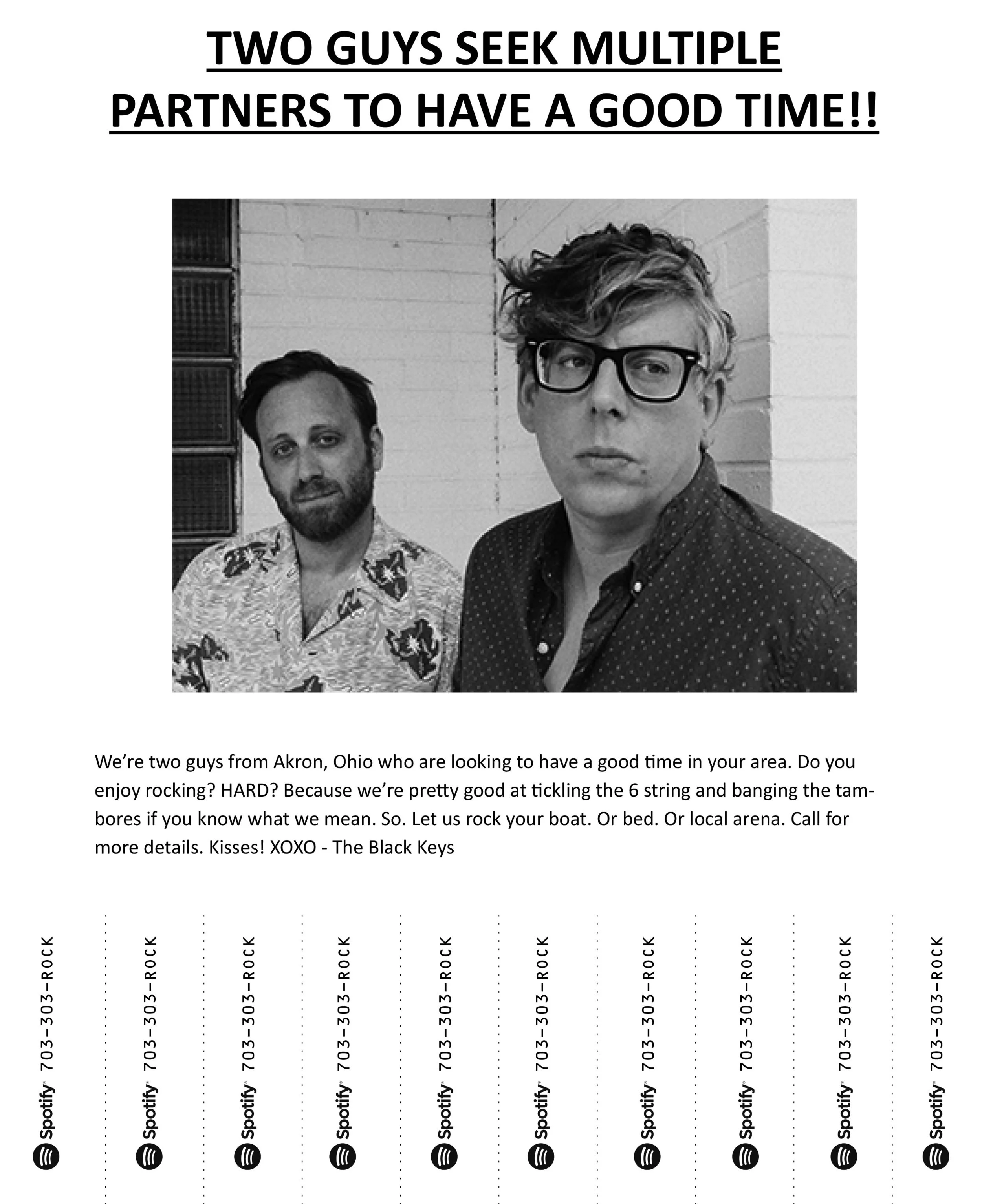 We printed and posted this “call me” ad in the biggest markets where the band would be playing.