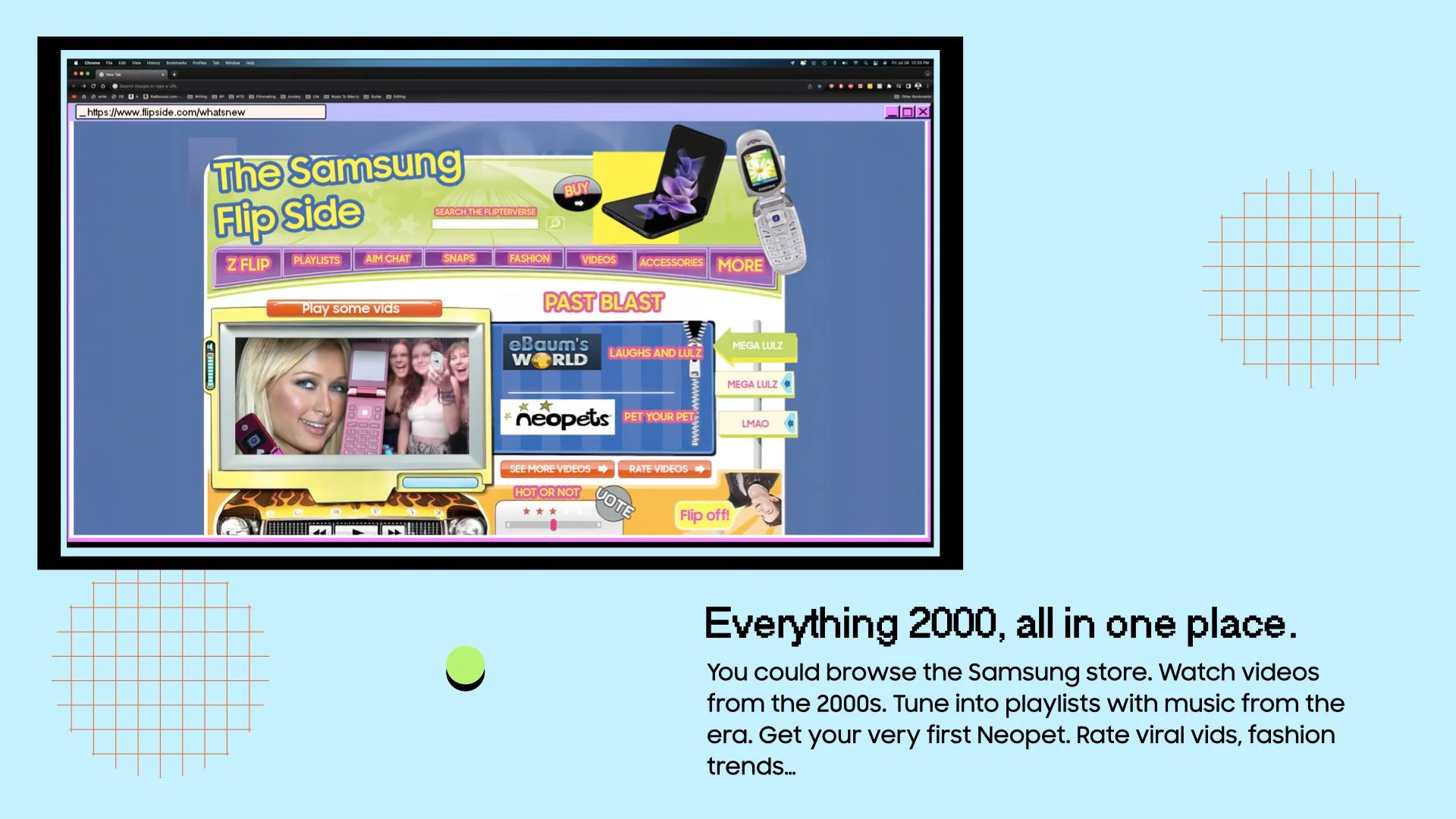 Gen Z is obsessed with Y2K fashion and culture. This phenomenon is common with younger generations, and is known as stolen nostalgia. So when asked to create something “PR worthy” for Samsung’s “Flip Side” campaign, we thought we’d literally just rebuild the online world of the 2000’s for Gen Z to experience firsthand.